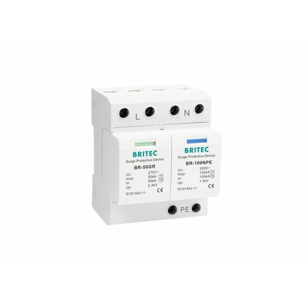 AC 50KA/100kA Din Rail Anti-lightning Protective Arrester 1P+NPE