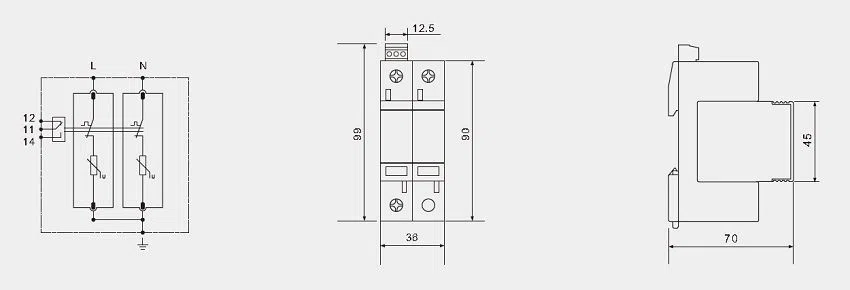 Type 2 surge arrester Dimension: